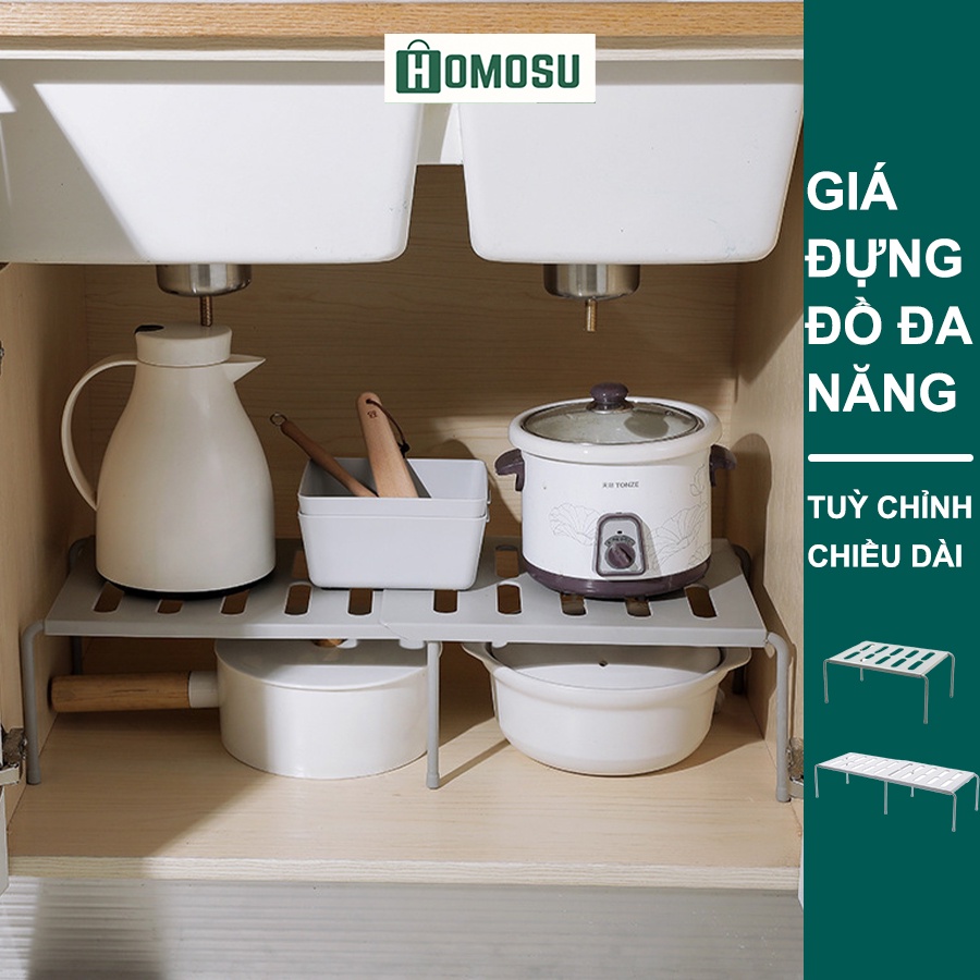 - Biến 1 ngăn tủ thành 2 tầng hay rất nhiều tầng đựng được thật nhiều đồ dùng, vật dụng cần thiết như: xoong, chảo, nồi, cốc, chén,…