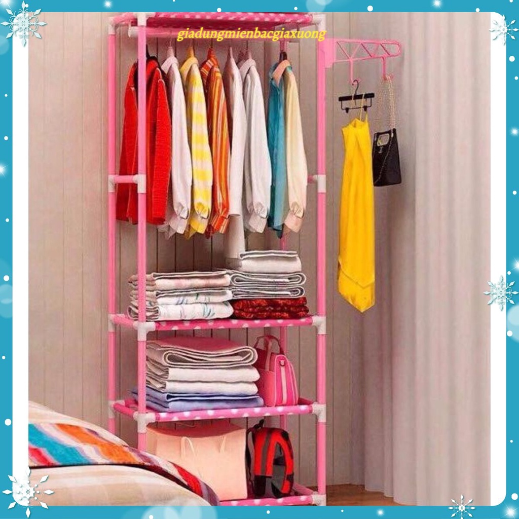 ❸ Khung sắt sơn tĩnh điện chắc chắn, cao rộng treo được nhiều đồ có thêm tầng để đựng vali du lịch, Quần Áo bò…