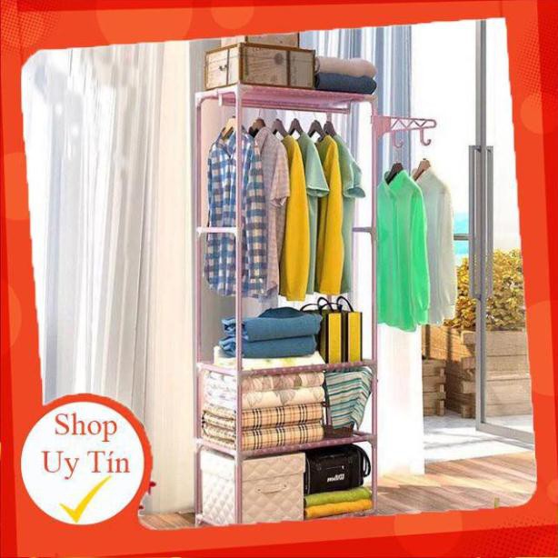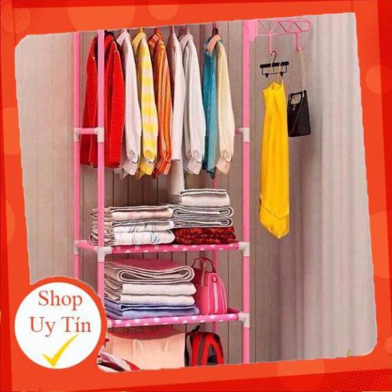 ❸ Khung sắt sơn tĩnh điện chắc chắn, cao rộng treo được nhiều đồ có thêm tầng để đựng vali du lịch, Quần Áo bò…