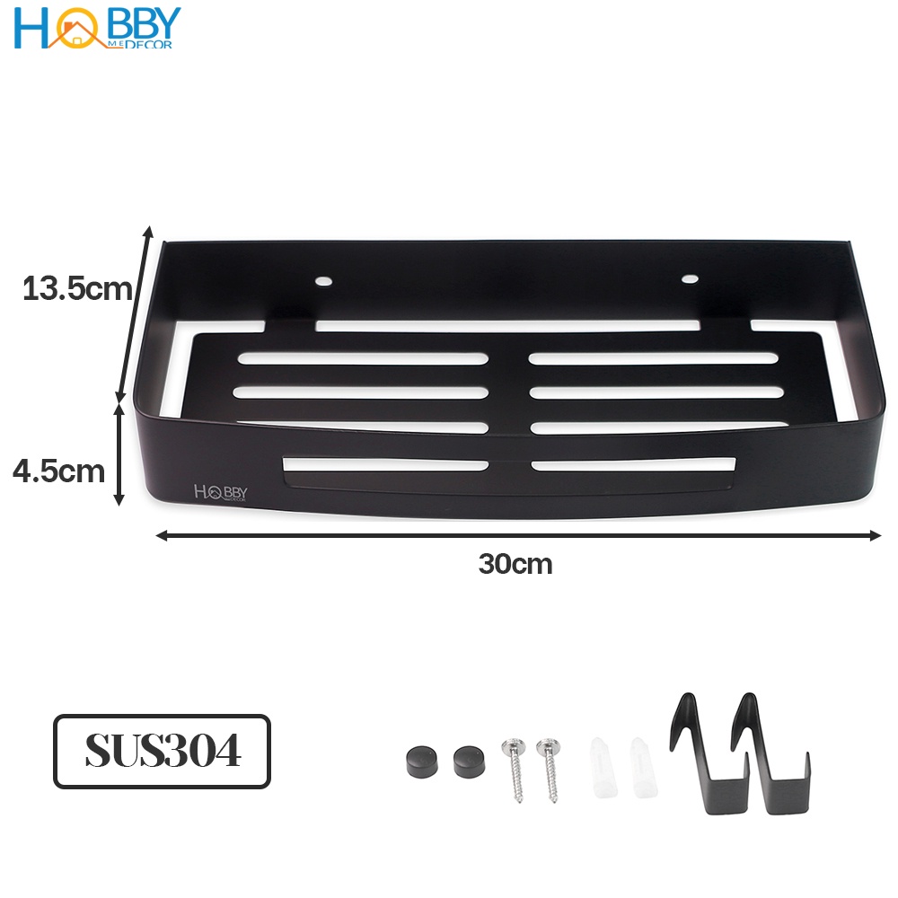 Nhà cửa & Đời sống > Đồ dùng phòng tắm > Kệ đựng xà phòng || Kệ chữ nhật phòng tắm Inox 304 HOBBY Home Decor KCN3 màu đen gắn tường - có sẵn đinh ốc và không rỉ sétCòn hàng