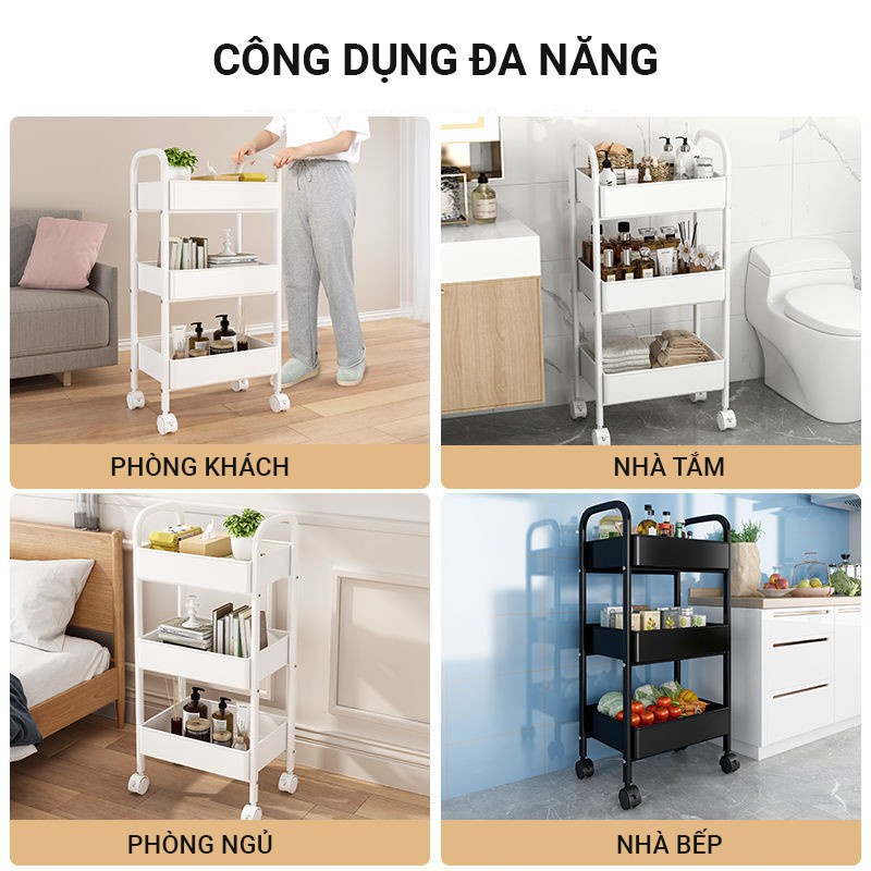 - Phù hợp với nhiều mục đích sử dụng khác nhau như để kệ nhà bếp , kệ để đồ bỉm sữa , kệ nhà tắm , kệ đa năng , xe đẩy spa ....