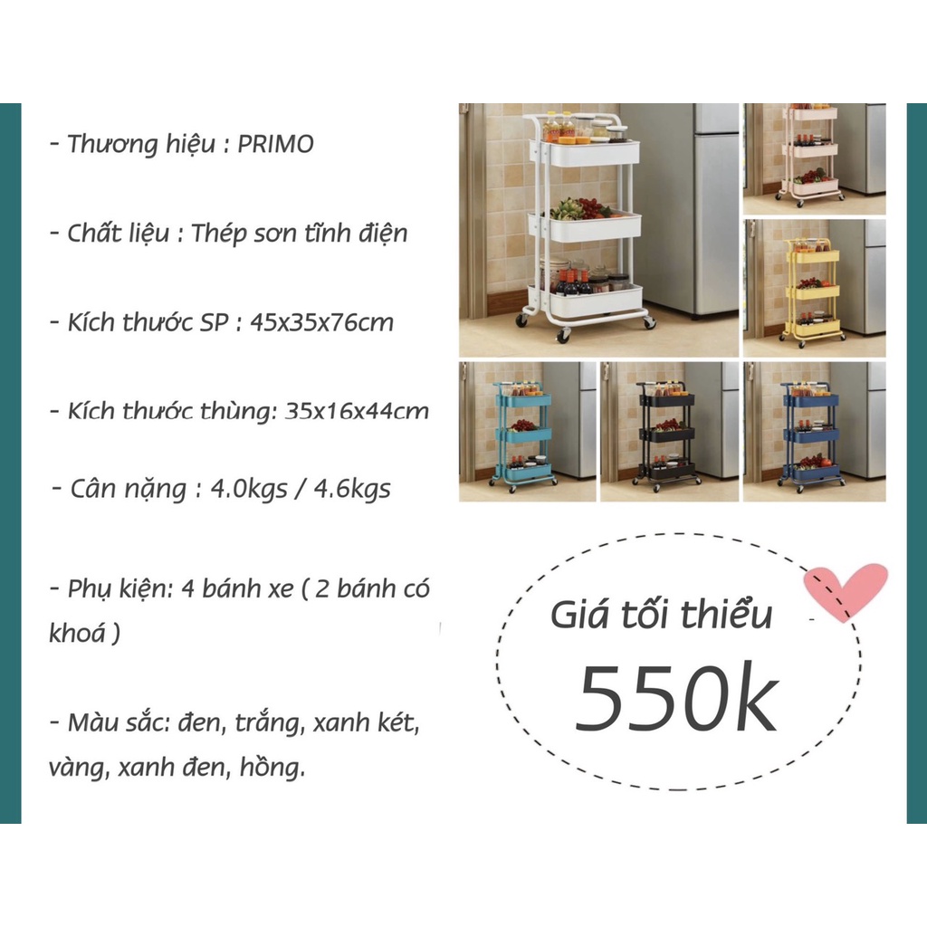 💥💥 Kệ tủ đa năng 3 tầng Primo có bánh xe mẫu mới 2022 💥💥