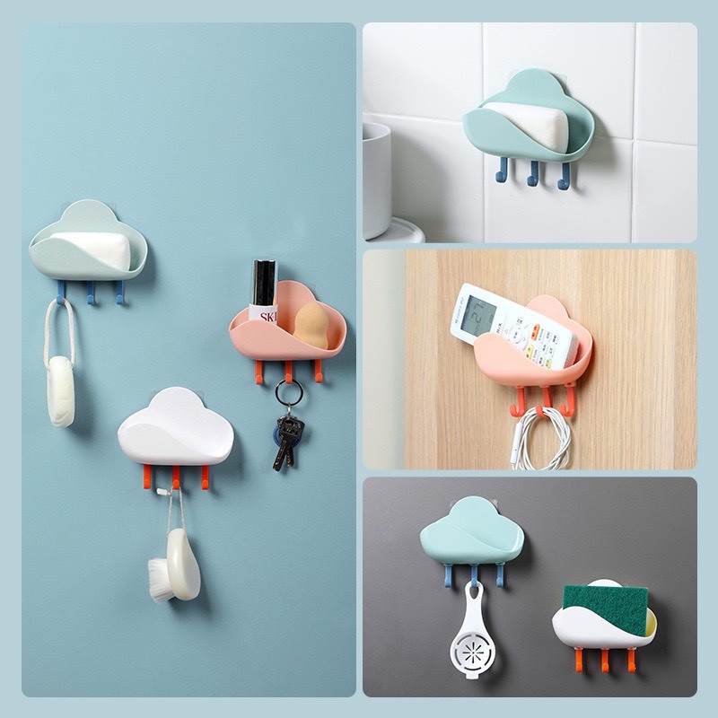 Nhà cửa & Đời sống > Đồ dùng phòng tắm > Kệ đựng xà phòng || Kệ đám mây xà phòng dán tường kèm móc treo (12x12cm)Còn hàng