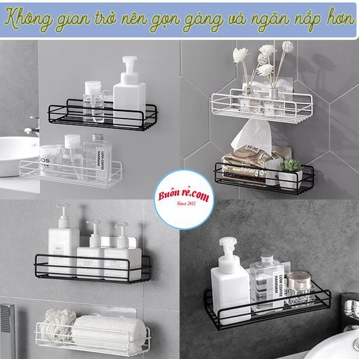 - Kệ sắt dán tường hình chữ nhật đựng đồ nhà tắm, nhà bếp giúp bạn tiết kiệm không gian nhà cửa, treo tường mà không cần khoan