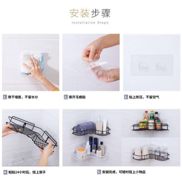 -Khi lắp đặt quý khách nhớ miết mạnh bề mặt của miếng dán rồi mới treo giá lên để tầm 12 – 24 tiếng cho keo khô để đảm bảo độ chịu lực rồi mới treo đồ lên để sử dụng