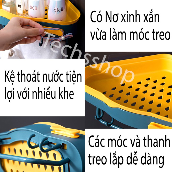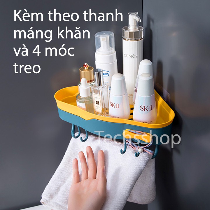 Kệ Dán Góc Tường Có Nơ Kèm 4 Móc Treo Và Thanh Máng Khăn - Kệ Nhựa Để Đồ Nhà Tắm Nhà Bếp