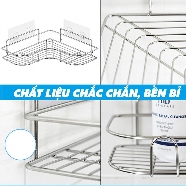 Kệ Dán Góc Tường Inox Lắp Đặt dán Không Cần Khoan Đục Giá Góc Treo Nhà Tắm Không Han Gỉ