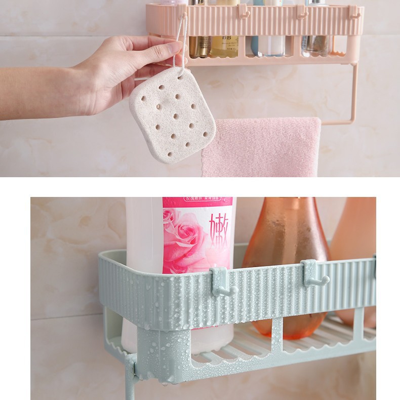 Kệ dán kiêm treo đồ nhà tắm tiện lợi
