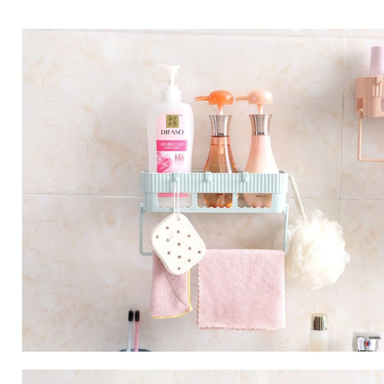 Kệ chữ nhật hút chân không kèm giá treo khăn lau , bông tắm