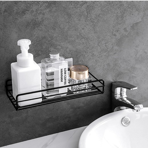 Nhà Cửa & Đời Sống > Đồ dùng phòng tắm > Kệ để đồ phòng tắm || Kệ Dán Tường Chữ Nhật Màu Đen Sơn Tĩnh Điện Decor Trang Trí Nhà Tắm Phòng NgủCòn hàng