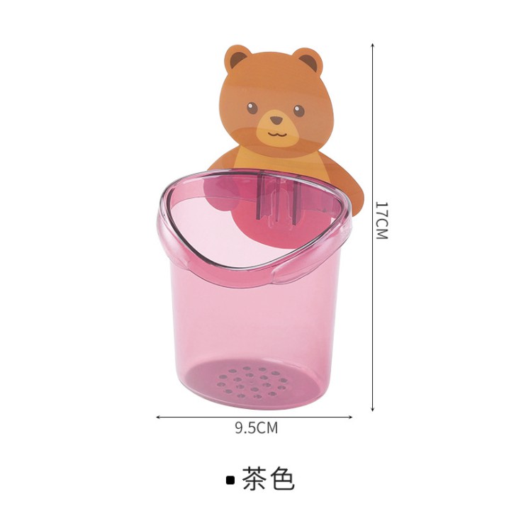 Kệ Dán Tường Cốc Gấu Đựng Bàn Chải, Kem Đánh Răng, Để Đồ Dùng Phòng Tắm Có Lỗ Thoát Nước Tiện Lợi