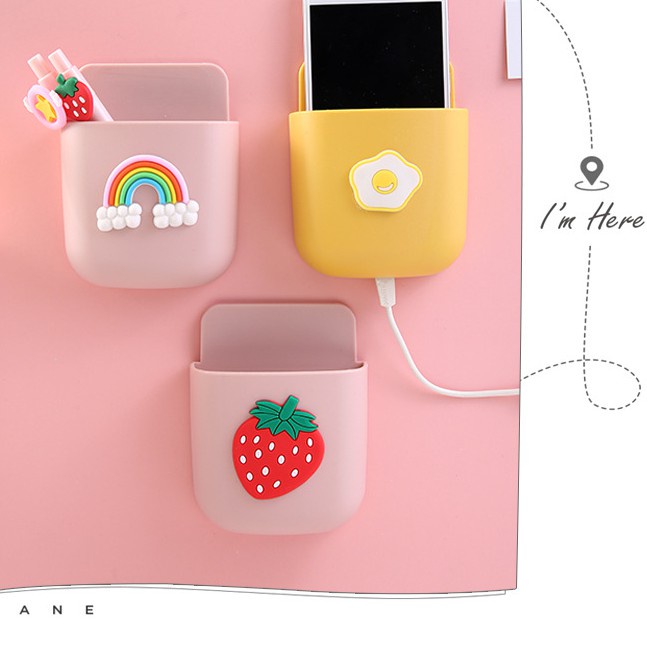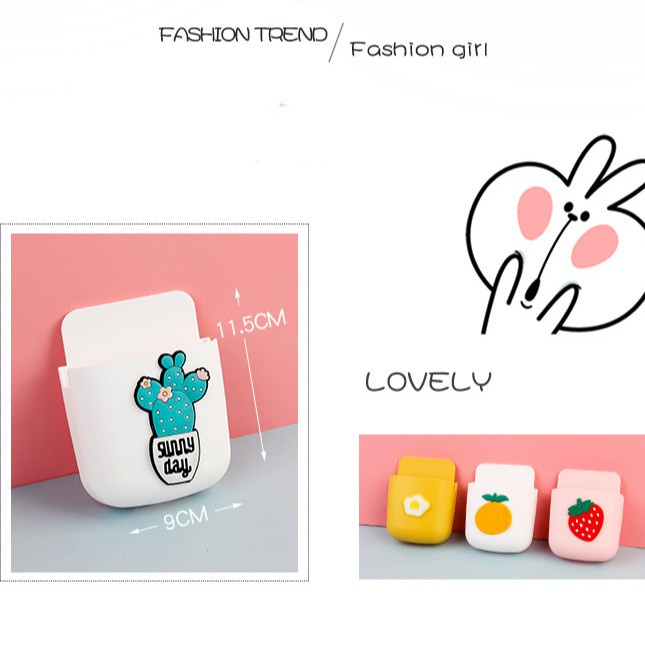 Kệ dán tường để bút/ điện thoại/ điều khiển dễ thương - Giá treo tường Hàn Quốc - Kệ dính tường 9*11*3.5cm Clovershop68