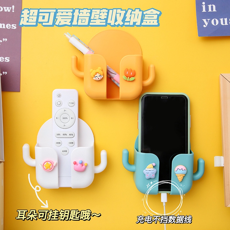 Kệ Gắn Tường Để Điện Thoại Khi Sạc Có Khe Hở Tiện Lợi, Để đồ dùng, RemoteHộp Đựng Remote, Điện Thoại Có Lỗ Cắm Sạc Dán Tường