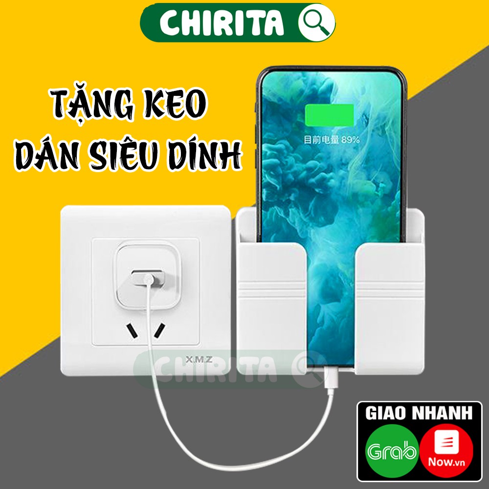 Kệ Dán Tường Để Điện Thoại (Tặng Keo Dán) - Có Khe Sạc Tiện Lợi, Kệ Dán Tường Đa Năng Để Điện Thoại, Remote,.. CHIRITA