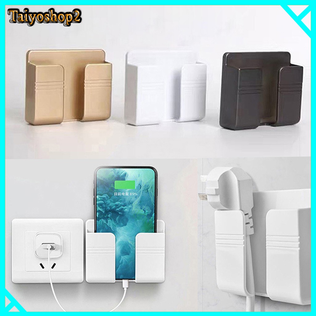 - Kệ dán tường giúp cố định khu vực sạc điện thoại khi dây sạc quá ngắn so với ổ cắm điện.