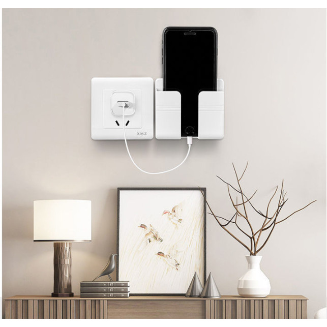 Điện Thoại & Phụ Kiện > Phụ kiện > Phụ kiện selfie > Giá đỡ || Kệ Dán Tường Để Remote, Giá Đỡ Sạc Điện Thoại - Có Móc Treo Giữ Dây Tiện LợiCòn hàng
