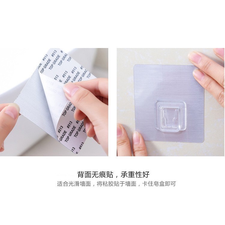 - Móc dán siêu chắc, giữ khay xà bông chắc chắn mà không cần khoan đục tường.