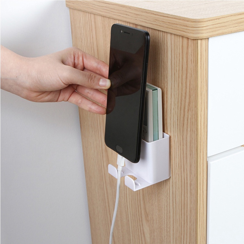 *Ưu điểm của kệ dán tường đựng remote- Kệ để remote kèm móc treo sạc điện thoại tiện lợi, giúp không gian xung quanh bạn gọn gàng, bắt mắt.