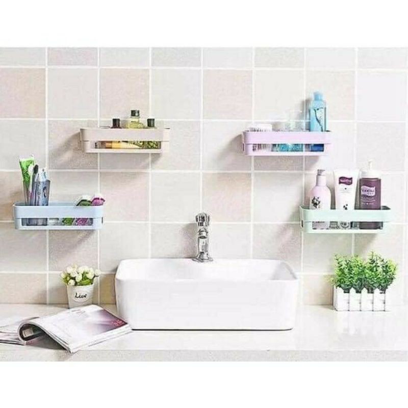 Kệ nhựa dán tường nhà tắm, nhà bếp hình chữ nhật siêu dính