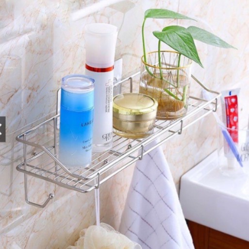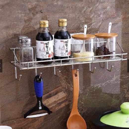 Kệ INOX để chai lọ gia vị nhà bếp , đồ dùng nhà tắm dán tường kèm móc tiện lợi- Tạo nên không gian gọn gàng, tiện nghi cho căn bếp hoặc nhà tắm nhà bạn.