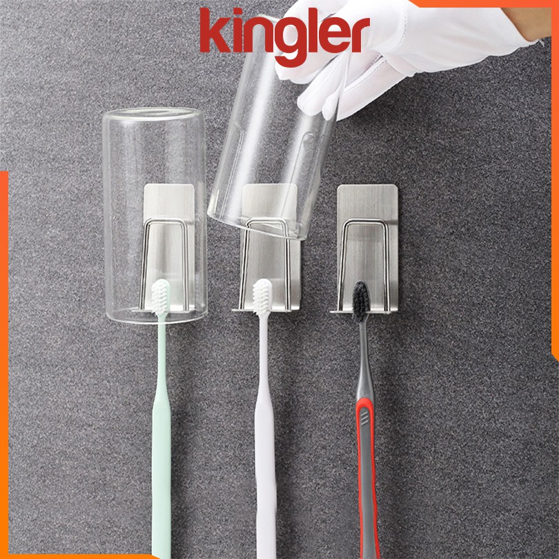 Kệ Dán Tường Inox Để Bàn Chải Đánh Răng, Không Khoan Đục, Sử Dụng Miếng Dán 3M, Sang Trọng. Kingler 4011
