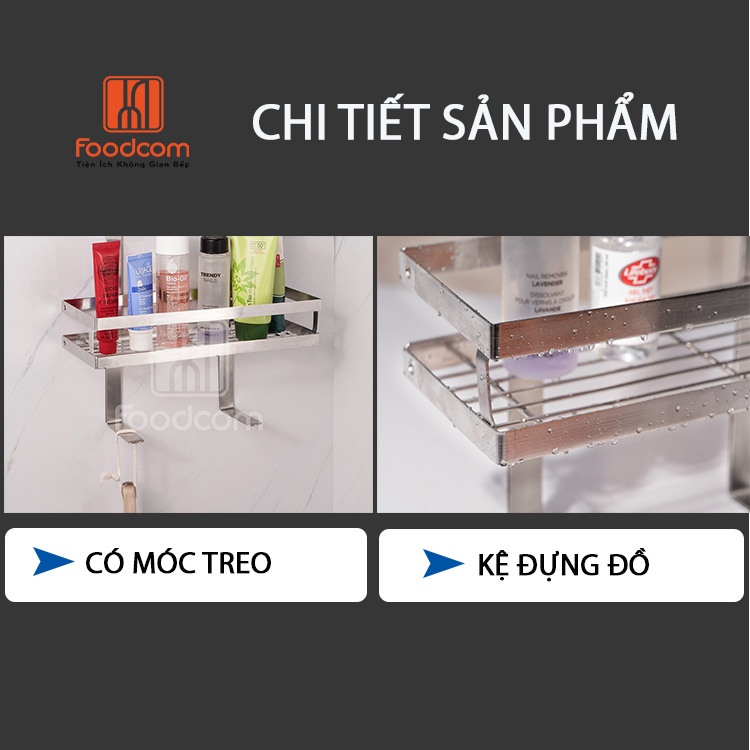 Nhà cửa & Đời sống > Đồ dùng phòng tắm > Kệ để đồ phòng tắm || Kệ dán tường nhà tắm đa năng Foodcom chất liệu inox cao cấp không han gỉ có keo 3M chắc chắn không khoan đụcCòn hàng