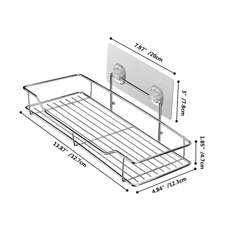 Kệ Dán Tường Nhà Tắm, Kệ Inox 304 Treo Tường Để Đồ Nhà TắmTặng Kèm Miếng Dán Tường Siêu Dính (Không Cần Khoan Đục)