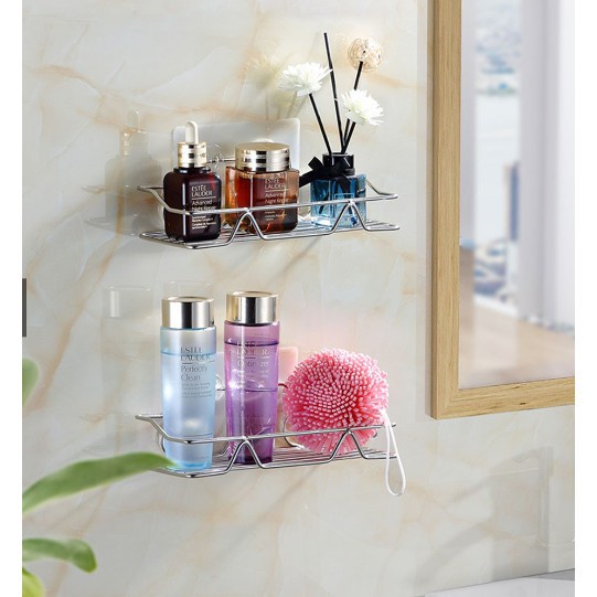 Kệ Dán Tường Nhà Tắm, Kệ Inox 304 Tặng Kèm Miếng Dán Tường Siêu Dính ( Không Khoan Đục)