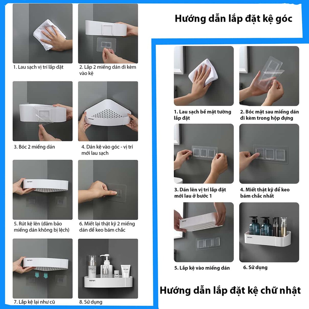 Việc lắp đặt KỆ DÁN TƯỜNG NHÀ TẮM HT828 cũng vô cùng dễ dàng, bất kỳ ai cũng có thể làm được - không cần thuê thợ, không cần có máy khoan, không sợ vỡ tường...