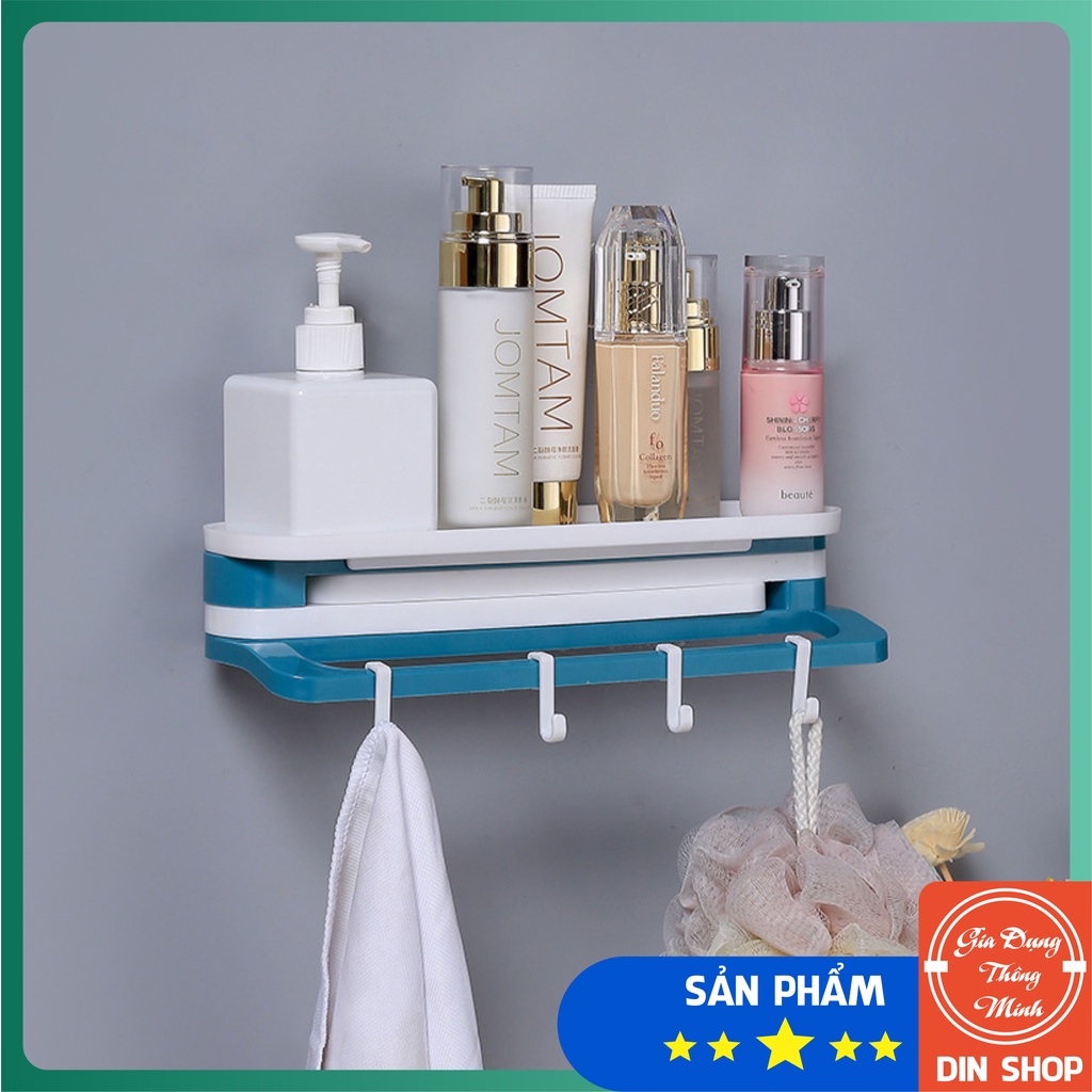 Kệ Dán Tường Nhà Tắm Nhà Bếp ⚜️ GẤP GỌN THÔNG MINH ⚜️ Giá Để Đồ Phòng Tắm Đa Năng Có Thanh Treo Khăn Tiện Lợi