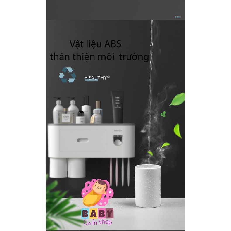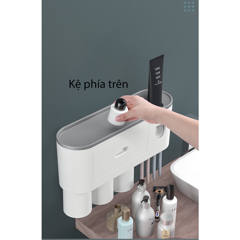 KỆ DÁN TƯỜNG NHÀ TẮM THÔNG MINH LOẠI 2 CỐC CÓ BỘ NHẢ KEM ĐÁNH RĂNG TỰ ĐỘNG.