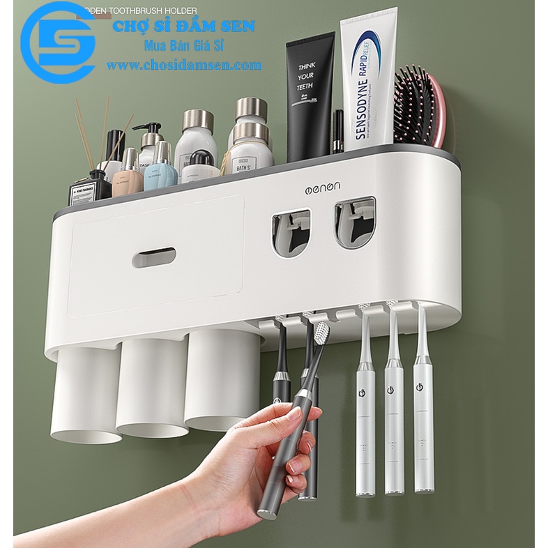 Nhà cửa & Đời sống > Đồ dùng phòng tắm > Kệ đựng bàn chải, kệ nhả kem đánh răng || Kệ dán tường OENON decor nhà cửa, dùng để bàn chải đánh răng kết hợp 2 bộ nặn kem, kèm ly (cốc) hút từ tính G266-HBCKH2NCòn hàng