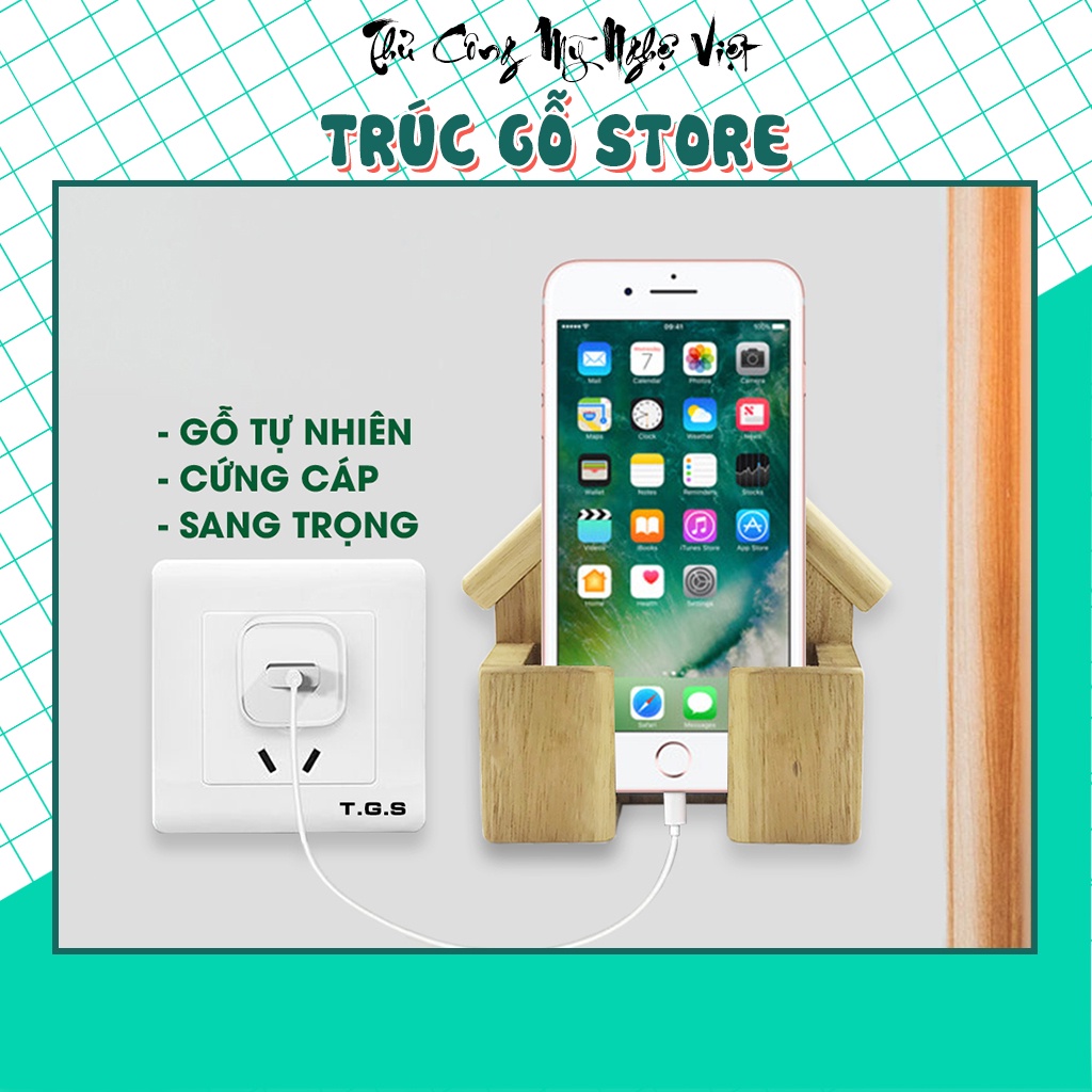 Nhà cửa & Đời sống > Nội thất > Kệ & Giá || Kệ dán tường sạc pin điện thoại/remote điều khiển chất liệu gỗ tự nhiên - hình ngôi nhàCòn hàng