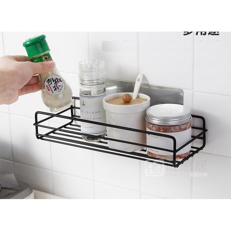 Giới thiệu Kệ Dán Tường Sắt Hình Chữ Nhật Đựng Đồ Nhà Tắm Nhà Bếp Sang Trọng Tiện Dụng 88284 Korea Store 88