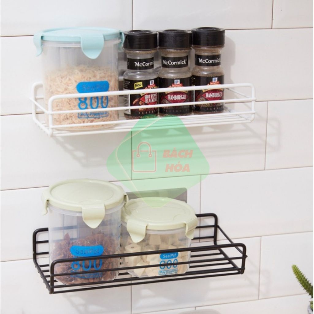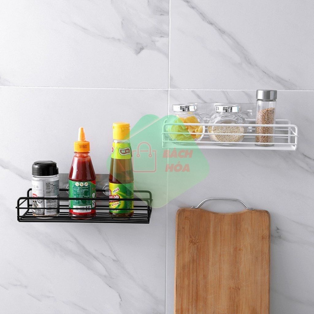 Kệ Dán Tường Sắt Sơn Tĩnh Điện Hình Chữ Nhật Đựng Đồ Nhà Bếp, Nhà Tắm Tiện Dụng Đa Năng