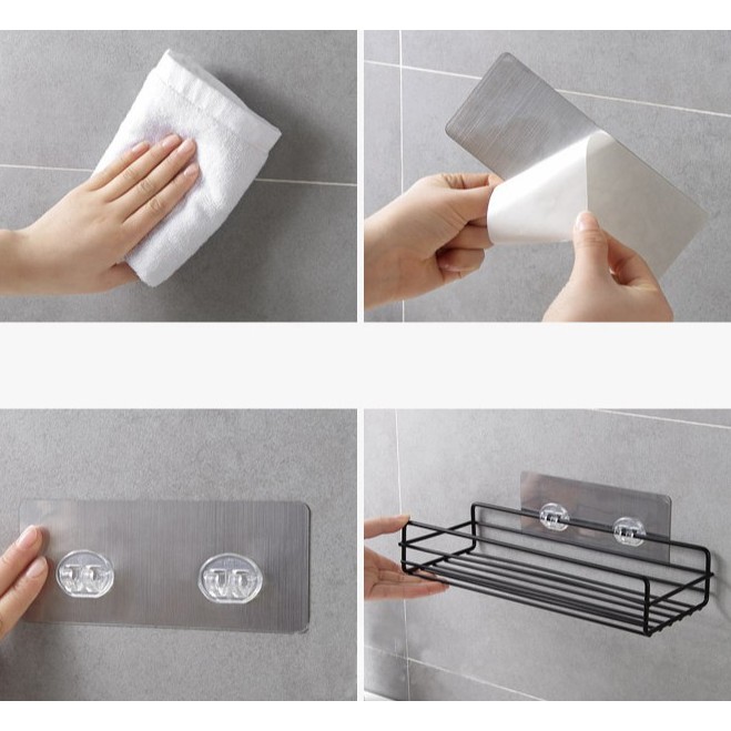 🔥 Hướng dẫn sử dụng Kệ dán tường sắt hình chữ nhật đựng đồ nhà tắm nhà bếp: