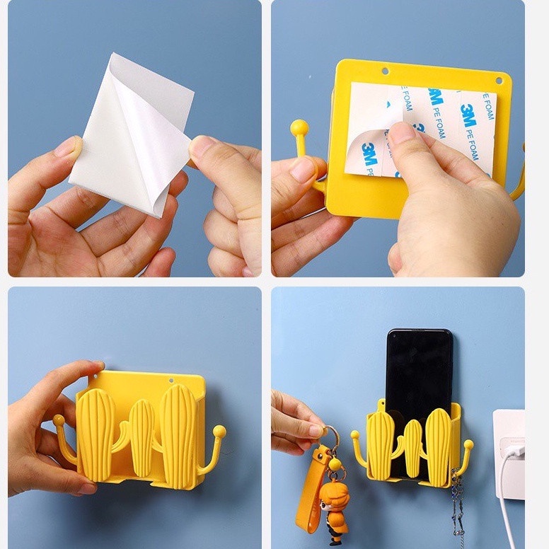 Nhà cửa & Đời sống > Trang trí nhà cửa > Khác || Kệ Dán Tường Xương Rồng Để Điện Thoại, Remote, Có Móc Treo Chìa Khóa Thông MinhCòn hàng