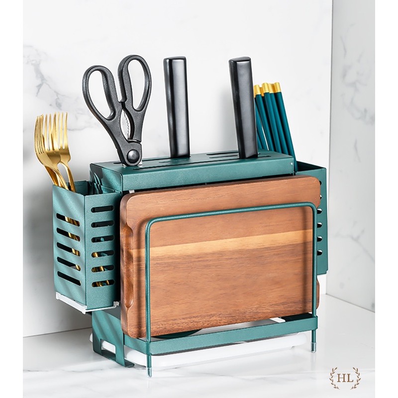 KỆ DAO THỚT XANH NGỌC BÍCH | GÀI DAO THỚT ĐA NĂNG CÓ KHAY HỨNG NƯỚC ỐNG CẮM ĐŨA XANH CỔ VỊT