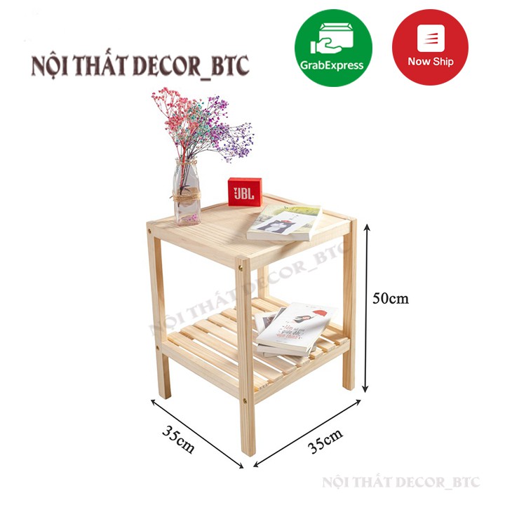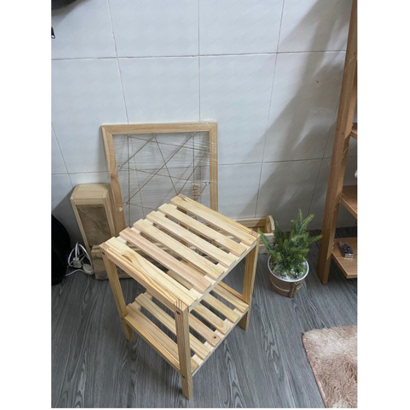 Nhà cửa & Đời sống > Nội thất > Kệ & Giá || Kệ đầu giường 2 tầng gỗ thông tự nhiên, đã qua xử lý, không mối mọt l Kệ tab 2 tầng bằng gỗ decor phòng ngủCòn hàng