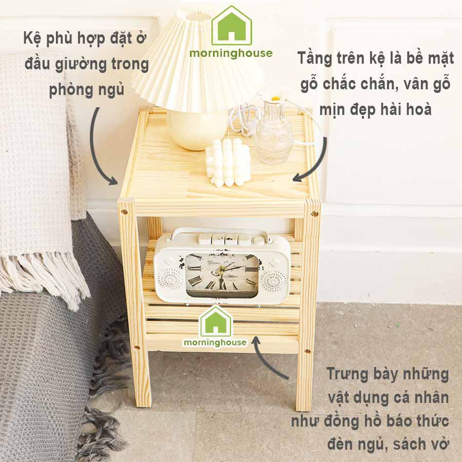 [Mã LIFEBKM1 giảm 10% tối đa 1 triệu đơn từ 500k] KỆ ĐẦU GIƯỜNG GỖ THÔNG TRANG TRÍ MẶT VÁN