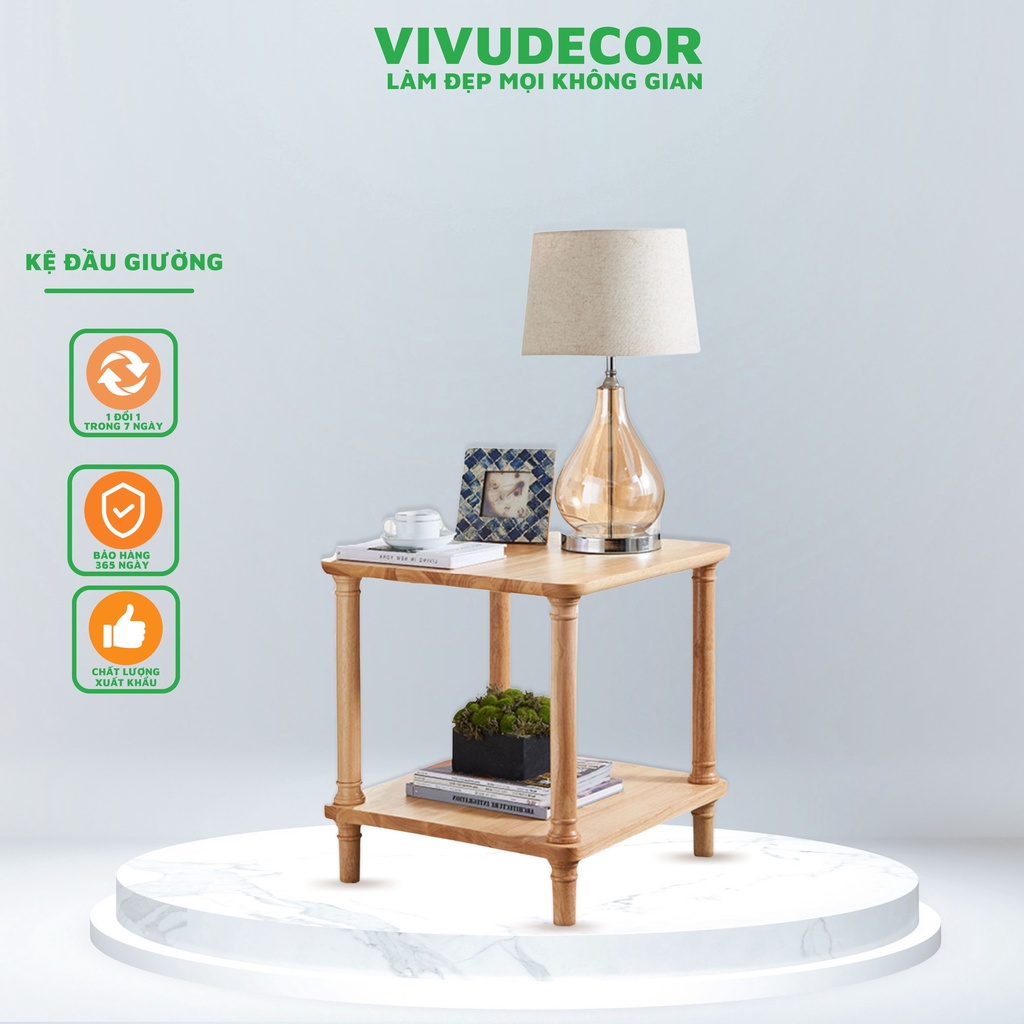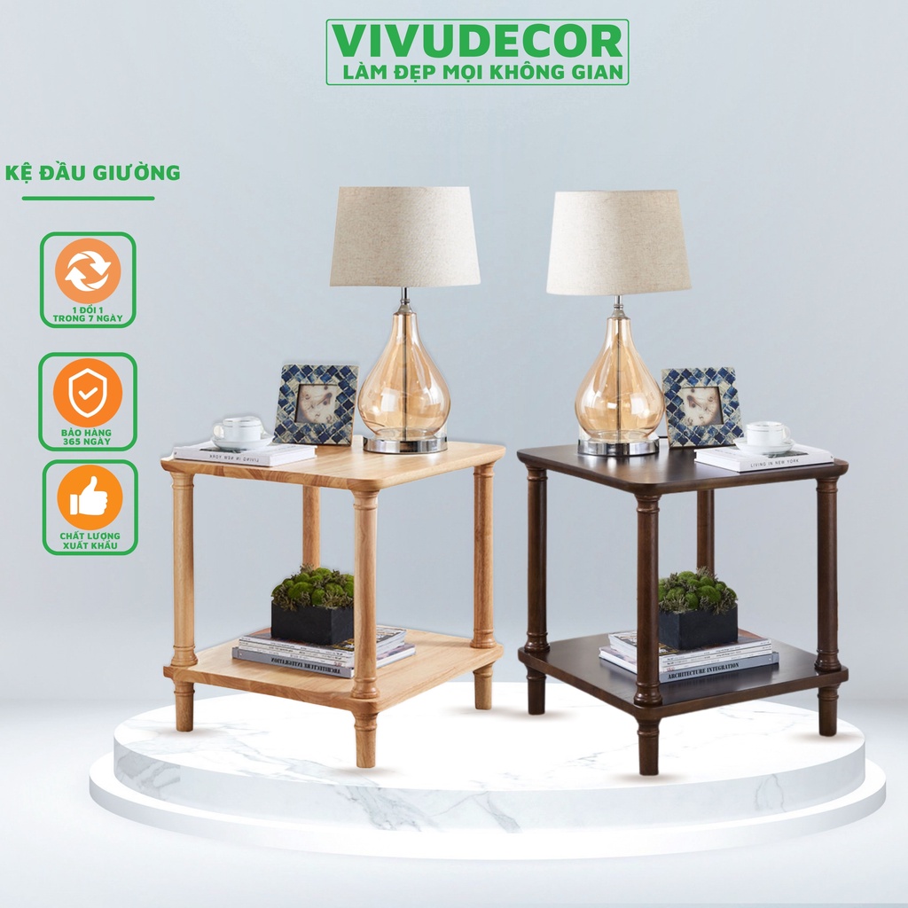 Kệ đầu giường Vivudecor 100% gỗ tự nhiên, Kệ gỗ 2 tầng lắp ráp đa năng sang trọng chất lượng Xuất Khẩu