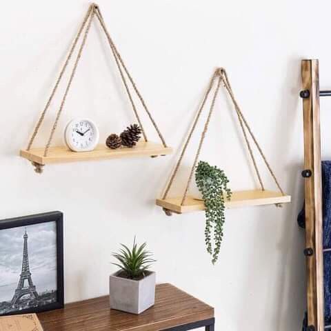 Với kệ gỗ treo tường này bạn có thể thỏa sức trang trí sáng tạo trên đó hoặc tháo xuống di chuyển mỗi khi muốn thay đổi không gian đều vô cùng tiện lợi. Bạn có thể dùng làm kệ sách, kệ trồng cây kiểng mini