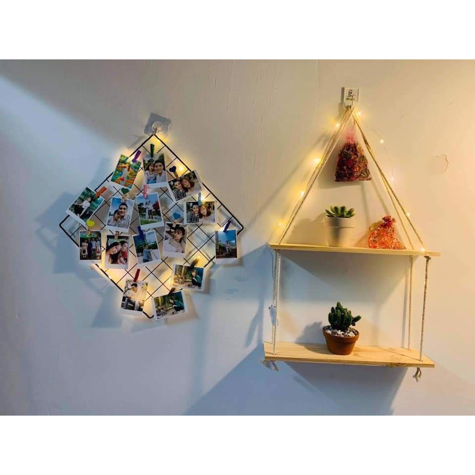 Kệ Dây Thừng Gai Treo Tường Trang Trí Gỗ Thông Tự Nhiên - Nhà Mỵ Shop
