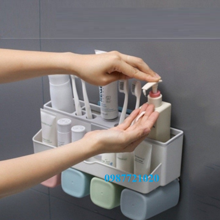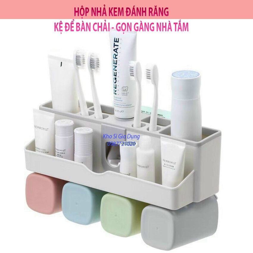 Kệ để bàn chải đánh răng - bộ nhả kem đánh răng kèm cốc dán tường nhà tắm