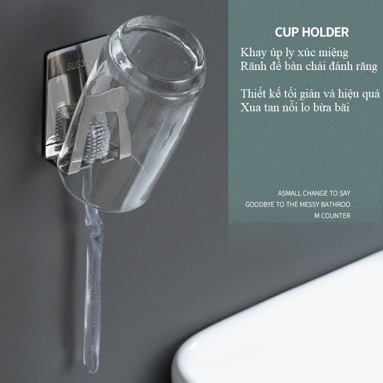 Kệ Để bàn chải đánh răng Dán tường 1 rãnh kèm treo ly xúc miệng inox 304