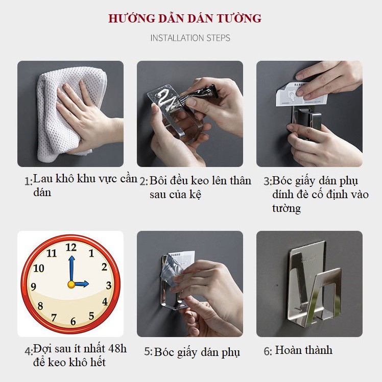 - Lắp đặt vô cùng đơn giản, chỉ cần 30s bôi keo và dán sản phẩm vào tường, đợi sau 24h keo khô hoàn toàn là có thể sử dụng