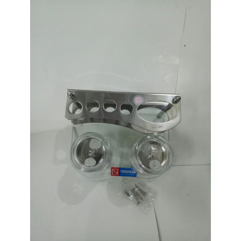 Bộ Kệ để bàn chải đánh răng dưới kính trên inox 304