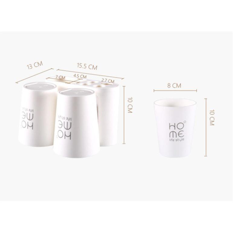 – Thiết kế đa năng gồm 4 lỗ cắm bàn chải và 1 lỗ để kem đánh răng, 2 cốc đánh răng không quai.