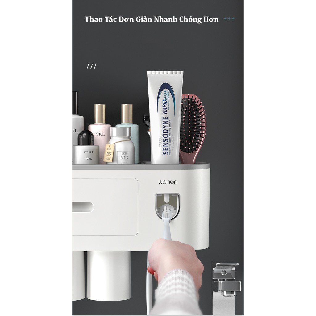 Kệ để bàn chải đánh răng, nhả kem đánh răng tự động, 3 cốc, Giadungbpm