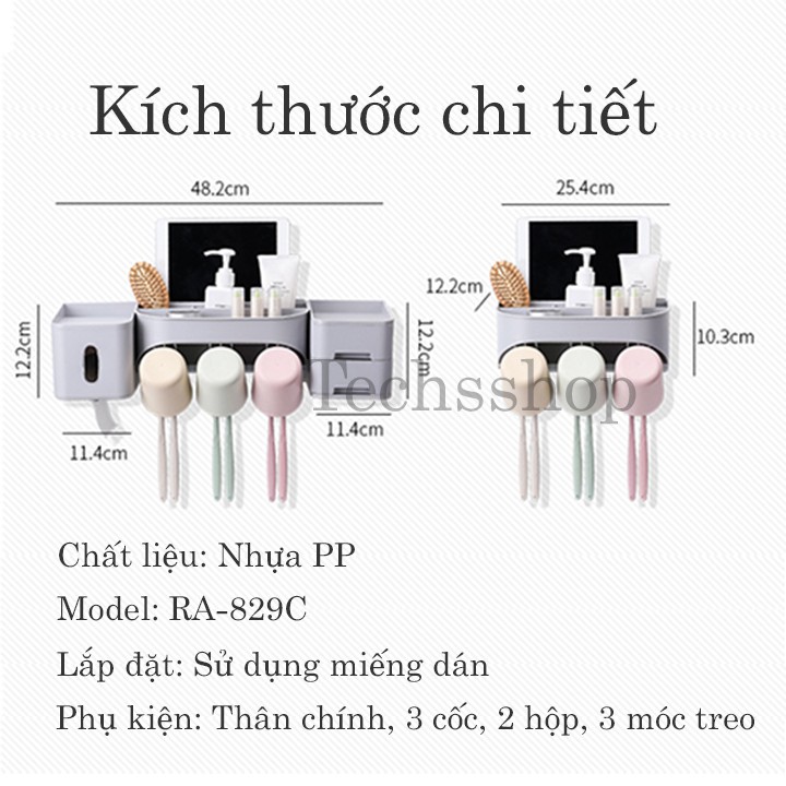 Nhà Cửa & Đời Sống > Đồ dùng phòng tắm > Kệ để đồ phòng tắm || Kệ Để Bàn Chải Kem Đánh Răng Đa Năng 8in1 Renai Ra-829C Có Hộp Đựng Giấy Vệ Sinh - Loại 3 cốc, 4 cốcCòn hàng